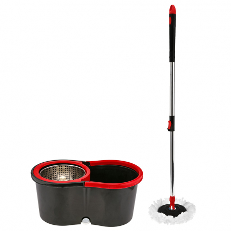 Набор для пола "Торнадо" ведро пластмассовое, рабочий объем 6л, 45х25,5х21см, без педали, с центрифугой из нерж., на колесиках; раздвижная рукоятка нерж. 72-101см д2,4см; насадка микрофибра д15,5см - 2 штуки; цвет черный, в цветной коробке (Китай) (арт. 106958)