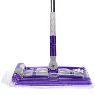 Швабра паркетная "Европа+" сирень нас-тряпка/микрофибра 14х35см, прижимной механизм, съемн раздвиж рукоят нерж 73-108см + запасная насадка-тряпка  (ДМ)