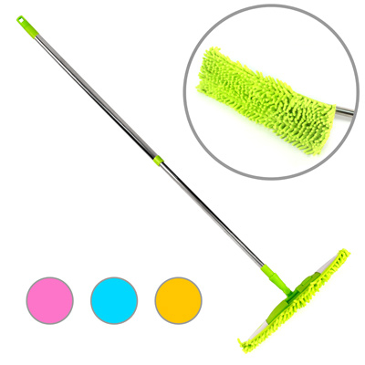 Швабра паркетная "Лапша" насадка микрофибра 40х11см, съемная, рукоятка нерж., раздвижная 70-118см, цвета микс (Китай) (арт. 049680)