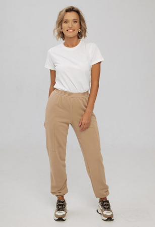 Брюки с карманами в боковых швах и накладными карманами. Выполнены из трехниточного футера премиального качества «пенье компакт» турецкого производства.