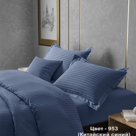 Комплект постельного белья Жемчужина китайский синий страйп-сатин с простынёй на резинке (арт. 0243456261-2-x спальный)