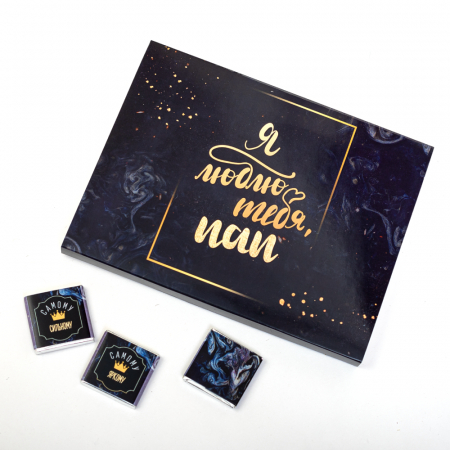 Каждая шоколадка упакована в индивидуальную этикетку с пожеланием.