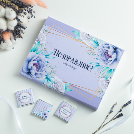 Набор 12 шоколадок "Поздравляю" сиреневый с цветами (арт. Н12075)