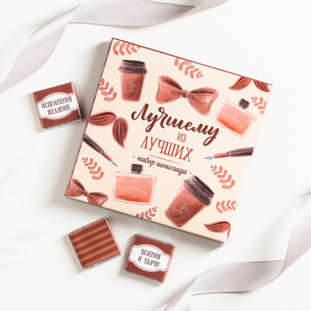 Каждая шоколадка упакована в индивидуальную этикетку с пожеланием.