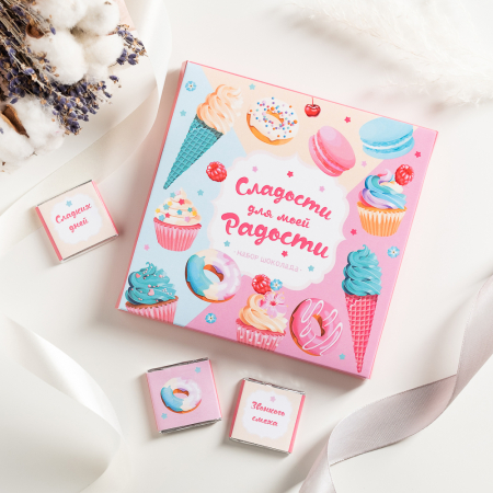 Каждый набор шоколада упакован в индивидуальный пакет.