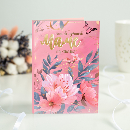 Открытка 4 шоколадки "Самой лучшей маме на свете (розовые цветы)" (арт. О4364)