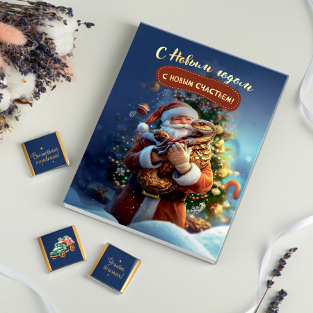 Каждая шоколадка упакована в индивидуальную этикетку с пожеланием.