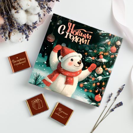 Набор 9 шоколадок "С Новым годом! (белый мишка возле ёлки)" (арт. Н9НГ193)