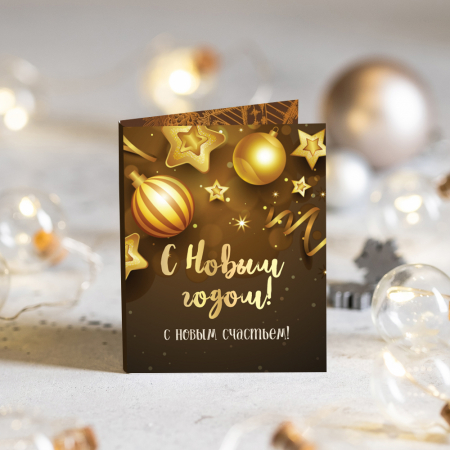 Мини-открытка "С Новым годом!" (коричневая с золотом) (арт. МОНГ218)