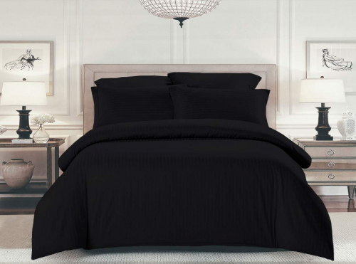 Комплект постельного белья Шпинель ультра черный страйп-сатин (арт. 14126432-Евро мини)