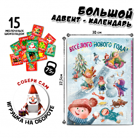 Яркий красочный адвент-календарь – это сюрпризы каждый день и повод украсить декабрь, отсчитывая дни до праздника. За каждым окошечком скрываются шоколадки с тёплыми новогодними пожеланиями. С этим календарём ожидание Нового года станет волшебным и появится соответствующее праздничное настроение.