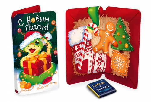 Яркие новогодние открытки, дополненные вкуснейшим молочным шоколадом. Милый сувенир, который может стать как отдельным презентом, так и дополнением к букету или большому подарку.