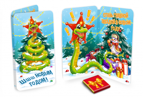 Яркие новогодние открытки, дополненные вкуснейшим молочным шоколадом. Милый сувенир, который может стать как отдельным презентом, так и дополнением к букету или большому подарку.