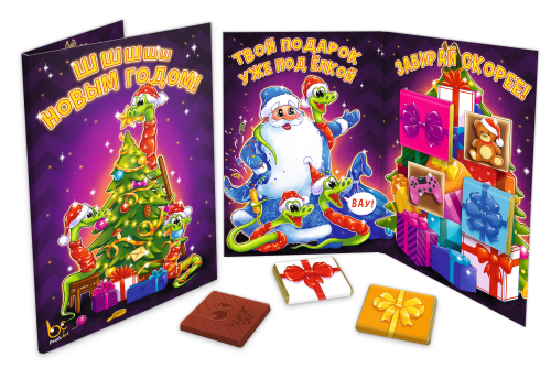 Вкусные подарки в виде открыток подарят множество ярких эмоций получателю. Что может быть лучше приятных слов?! Только приятные слова дополненные шоколадкой, а тут их целых 4!