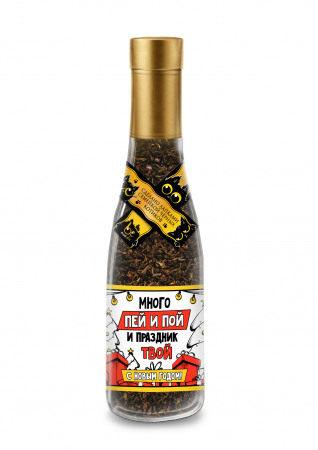 Одна из первых новогодних ассоциаций это, конечно, шампанское! Но оно же только для взрослых, да и на работе не выпьешь! А нам хочется, чтоб новогоднее настроение дарили всем! По этому, артоматнейший крупнолистовой чёрный чай мы упаковали в бутылку, которая напоминает бутылочку игристого! Получился игривый согревающий новогодний подарок, который подарит массу положительных эмоций получателю.