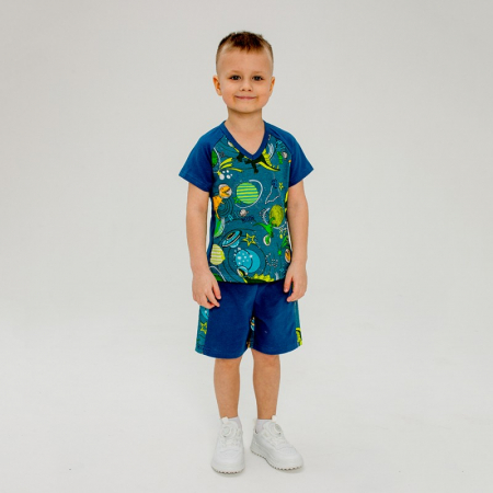 Размерный ряд: 98, 104, 110, 116, 122. Комплект: футболка, шорты. Ткань: кулирка. Состав: 100% хлопок. В данной модели предусмотрен выбор расцветки: индиго, синий.