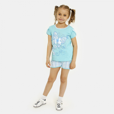 Размер ряд: 104, 110, 122, 128, 134, 140. Комплект: кофта, шорты. Ткань: кулирка. Состав: 100% хлопок. Замеры данной модели: Размер 110: Кофта: длина: 44см; обхват груди: 62см. Шорты: длина по внешнему шву: 23см; талия: 44см; обхват бедер: 60см. Размер 122: Кофта: длина: 44см; обхват груди: 66см. Шорты: длина по внешнему шву: 25см; талия: 56см; обхват бедер: 66см. Размер 128: Кофта: длина: 47см; обхват груди: 68см. Шорты: длина по внешнему шву: 27см; талия: 60см; обхват бедер: 68см. Размер 134: Кофта: длина: 49см; обхват груди: 74см. Шорты: длина по внешнему шву: 26см; талия: 60см; обхват бедер: 70см. Размер 140: Кофта: длина: 51см; обхват груди: 76см. Шорты: длина по внешнему шву: 26см; талия: 60см; обхват бедер: 78см. *замеры моделей выборочные, возможно незначительное отличие
