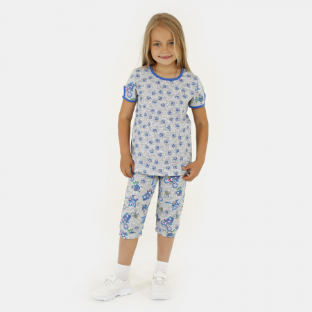 Размерный ряд: 104, 110, 122, 128, 134, 140. Комплект: футболка, брюки. Ткань: кулирка. Состав: 100% хлопок.