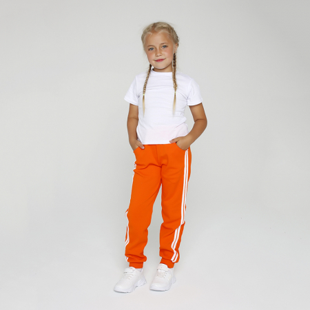 Размерный ряд: 104, 110, 116, 122, 128, 134, 140, 146. Ткань: гладкокрашеный интерлок плюс лампас. Состав: 100% хлопок. Размер 104: Об - 61 см, От - 55 см, Длина штанов - 58 см. В данной модели предусмотрен выбор расцветки: оранжевый, голубой, бирюза, салатовый.