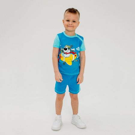 Размерный ряд: 74, 80, 86, 92, 98. Ткань: интерлок пенье. Состав: 100% хлопок В данной модели предусмотрен выбор расцветки: светло бирюзовый, светло голубой, голубой, бирюза, василек.