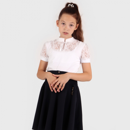 Размерный ряд: 128, 134, 140, 146, 152, 158. Ткань: кулирка с лайкрой плюс гипюр. Состав: 92% хлопок, 8% лайкра.Данная модель отшивается в одной расцветке.