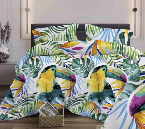 Наволочка Туканы зеленый бязь (арт. 01435870759-50х70)