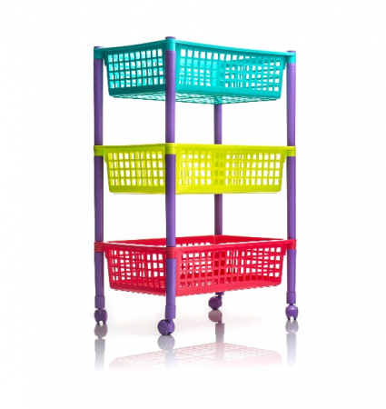 Контейнер состоит из трех глубоких равных по размеру ящиков, в которые легко поместятся как маленькие, так и объемные предметы детской игры. Ящики крепятся к прочным основаниям, имеющим на конце по колесу. Колеса мягкие, гладкие, не царапают поверхность пола.