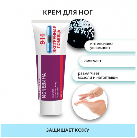 Мочевина интенсивно увлажняет и смягчает кожу. Крем питает эпидермис, защищает от сухости и успокаивает кожный покров. Формула на основе мочевины в сочетании с экстрактами чистотела и коры дуба способствует снятию усталости и тяжести в ногах.