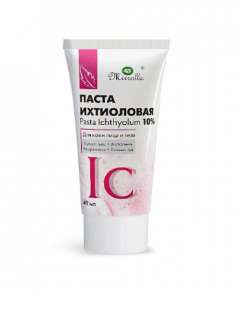 Ихтиол обладает успокаивающими, восстанавливающими и подсушивающими свойствами. Ихтиоловую пасту применяют для защиты кожных покровов от раздражений, для ухода за проблемной кожей в целях предотвращения появления прыщей и угрей. Особая формула ихтиоловой пасты «Мирролла»® в виде эмульсии, благодаря своим пленкообразующим свойствам, позволяет фиксировать активный компонент на поверхности кожи, обеспечивая дополнительную защиту от внешних факторов. Удобная форма упаковки позволяет экономично и гигиенично использовать продукт.