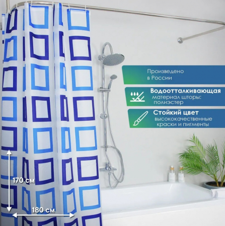 Выполнена штора из полиэстера с водоотталкивающей и антибактериальной пропиткой, которая препятствует появлению на шторе плесени и других вредных грибков.