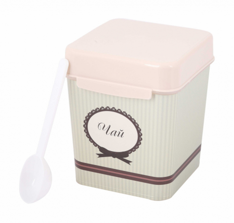 Квадратная ёмкость с откидной крышкой предназначена для хранения наиболее востребованных сыпучих продуктов: чая, сахара и соли. Яркий рисунок нанесен на изделие при помощи технологии IML, он не стирается и не повреждается в процессе эксплуатации. Декор дарит особый колорит изделию и создает определенную стилистику кухни. Тематическая надпись на рисунке сообщает о том, что находится внутри ёмкости. Мерная ложка в комплекте с ёмкостью добавляет изделию удобство использования.