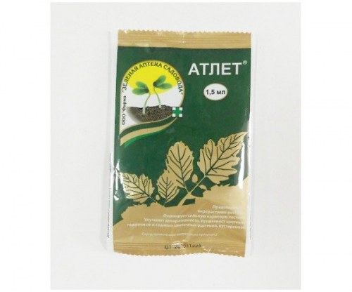 Механизм действия. Атлет проникает в растения через листья (опрыскивание) или корни (полив). Препарат замедляет рост надземной части, вызывает укорачивание и утолщение стебля, увеличивает ширину листьев. В растениях происходит перераспределение питательных веществ. Большая часть питательных веществ поступает в корни, вызывая их усиленный рост.
