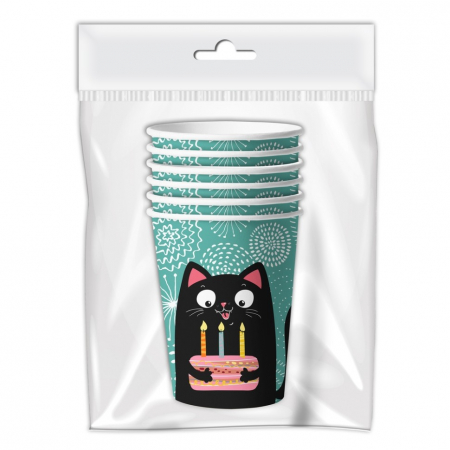 Набор для детского праздника состоит из 6 бумажных стаканов объемом 250 мл, упакованных в пластиковый пакет с еврохолдером. Стаканчики изготовлены из плотного мелованного картона, который не промокнет во время праздника.