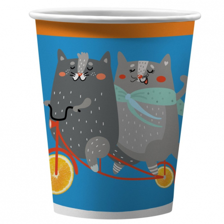 Набор для детского праздника состоит из 6 бумажных стаканов объемом 250 мл, упакованных в т/у плёнку. Стаканчики изготовлены из плотного мелованного картона, который не промокнет во время праздника.