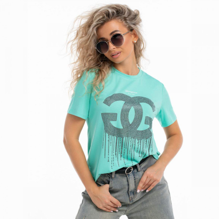 Футболка женская классическая, умеренного объема, длиной до линии середины бедер, рукав втачной короткий. Горловина округлой формы с обтачкой. Спереди дизайнерский принт.