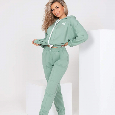 Костюм женский спортивный состоит из толстовки с капюшоном и брюк. Толстовка худи свободного кроя длиной до бедер, с длинными рукавами и с резинкой по низу. По середине переда декоративная строчка. Пояс толстовки со шнурком. Капюшон двойной с кулисой и шнурком. На середину переда толстовки нанесен дизайнерский принт. Брюки джоггеры свободные, с резинкой по низу, декоративной строчкой по переду штанин. Боковые внутренние карманы.