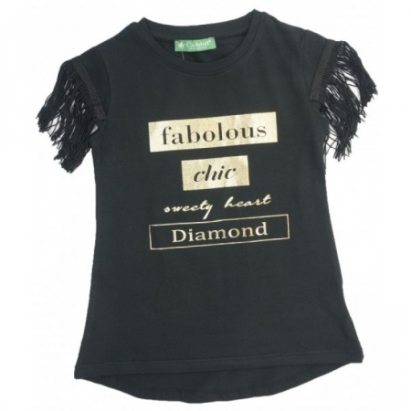Красивая модель из мягкого трикотажа, стильный рисунок, рукава с бахромой, понравится девочкам.