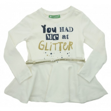 Удобная модель из мягкого трикотажа, яркий рисунок, стильный блестящий ремешок понравятся девочкам.