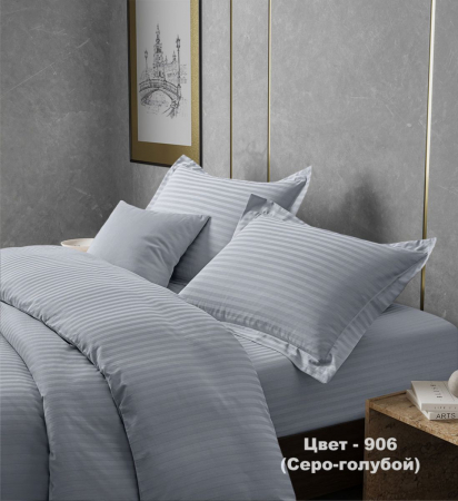 Комплект постельного белья Шпинель серо-голубой страйп-сатин с простынёй на резинке (арт. 1722376828-2-x спальный с Евро простыней)