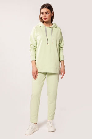 Брюки из футера. Эластичный пояс обеспечивает комфортную посадку данной модели на все типы фигур. Для удобства добавлены карманы.Под карманом расположена металлическая нашивка - логотип бренда. Они отлично вписываются в тренд на подобные модели, который поддержали на показах FW’20/21. Совет стилиста: Если в планах загородная поездка или прогулка, сочетайте брюки с объемным худи из комплекта.