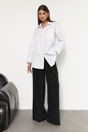 Комфортная базовая рубашка для любого случая из хлопка. Модель свободного прямого силуэта со спущенной линией плеча. По переду застёжка на петли и пуговицы. Рукав с манжетой расширенный. Воротник рубашечный. Длина: 78 см.