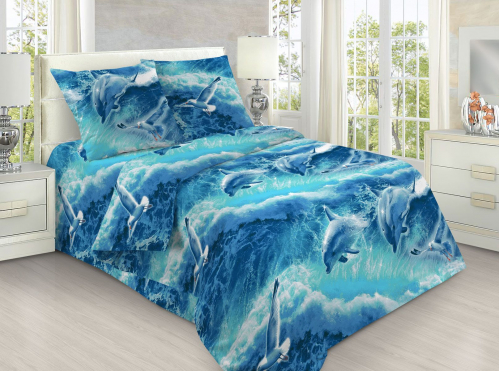 Комплект постельного белья Дельфины 3D бязь (арт. 1546545058-1.5 спальный)