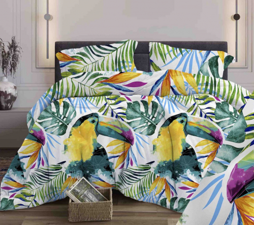 Постельное белье изготовлено из натуральной 100%-ой хлопковой ткани плотного плетения. Экологически чистый природный материал, способный сохранить яркость рисунка после множества стирок. Хорошо пропускает воздух, создавая комфортную атмосферу в вашей кровати.