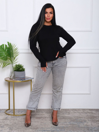 Лонгслив с длинным рукавом из кулирки с лайкрой. Горловина округлой формы с обтачкой, шов изнутри обработан тесьмой.