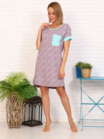 Туника домашняя из кулирки набивка - двойного крашения. Отделка гладкокрашенной кулиркой. Туника с карманом на груди, спущенный рукав, с разрезами в боковых швах.