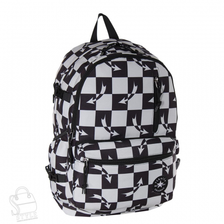 Снаружи два отдела на молнии. На передней части два кармана на молнии. По бокам открытые карманы.