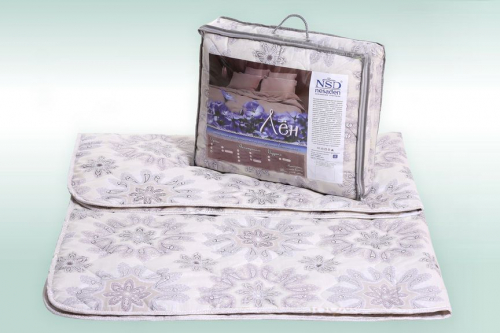Одеяло "Лен" стеганное, чехол из 100% хлопковой ткани плотностью 105 г./кв.м. и термоскрепленного наполнителя плотностью 200 г/кв.м с добавлением льняных волокон.
