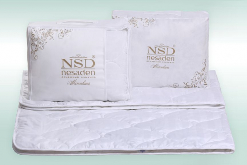 Одеяло "Мирослава" изготовлено из страйп-сатина плотностью 125гр/м.кв, в качестве наполнителя используется силиконизированное микроволокно 300 гр/м.кв.