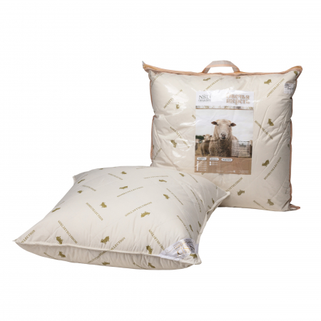 Подушка "Овечья шерсть" 2-х камерная, имеет стеганный чехол из тика 105 г/кв м. с термоскрепленной овечьей шерстью 100 г/кв.м, на молнии, и внутренний блок с наполнителем искусственный лебяжий пух.