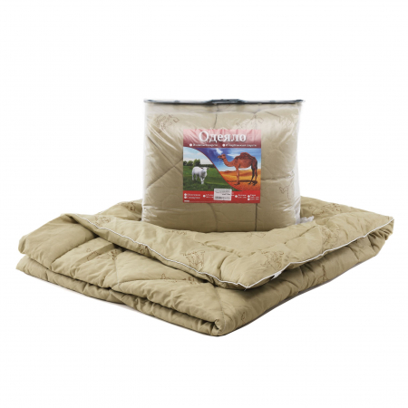 Чехол облегченных одеял "Верблюд-Эконом" также выполнен при помощи технолгоии ультрастеп (полиэстер+синтепон), для прочности в его края втачен кант. В качестве наполнителя используется верблюжья шерсть (150г/кв.м). Упаковано изделие в пакет с ручкой.